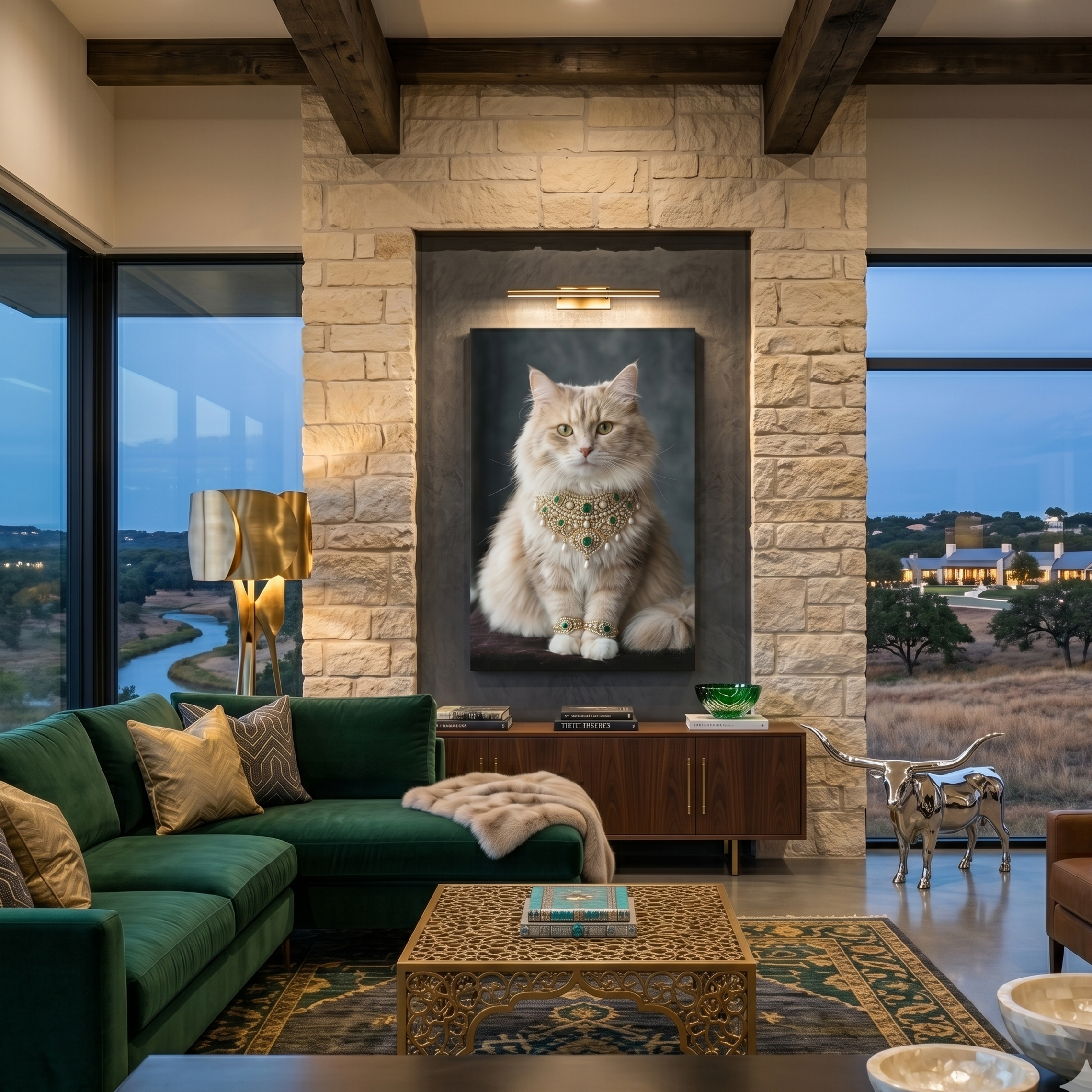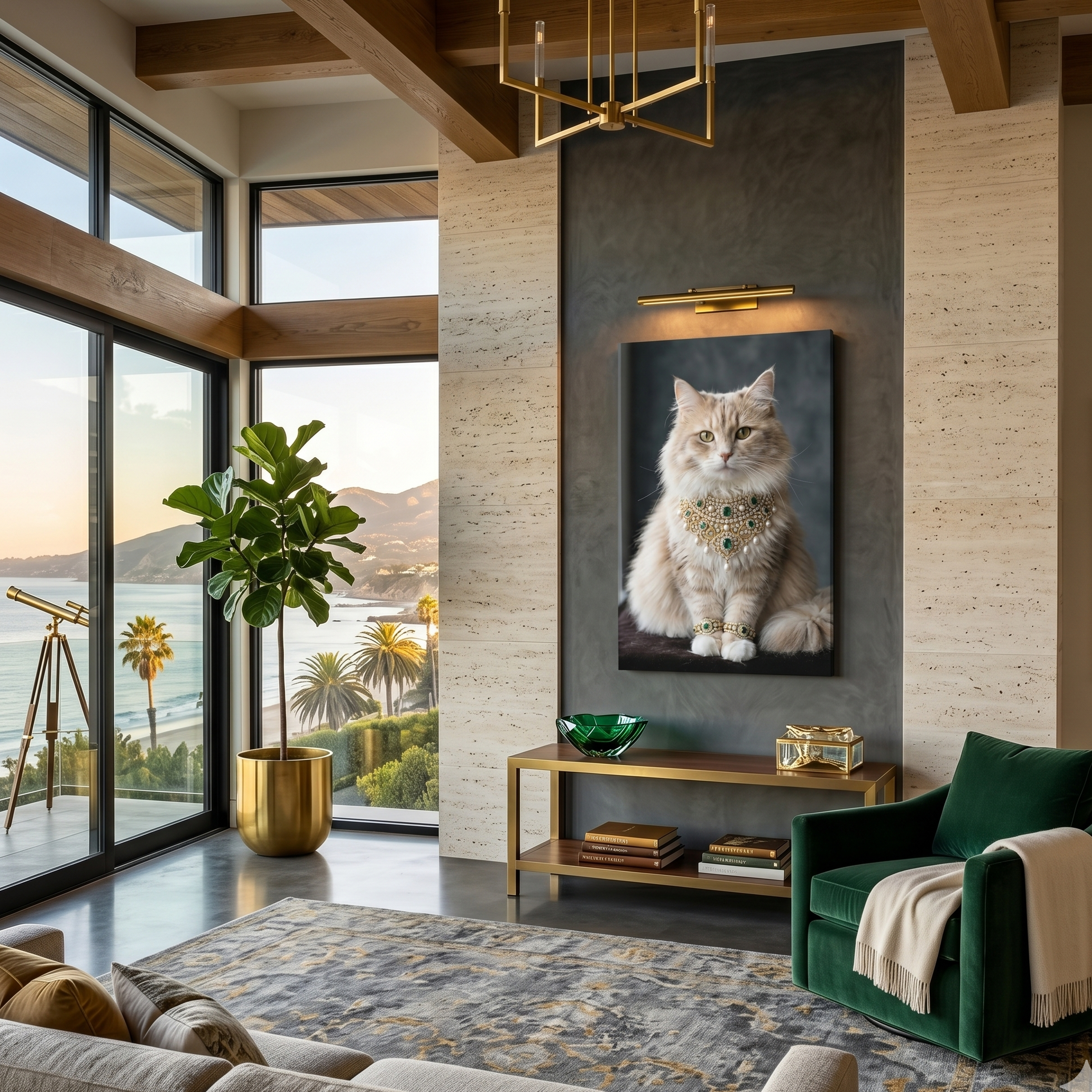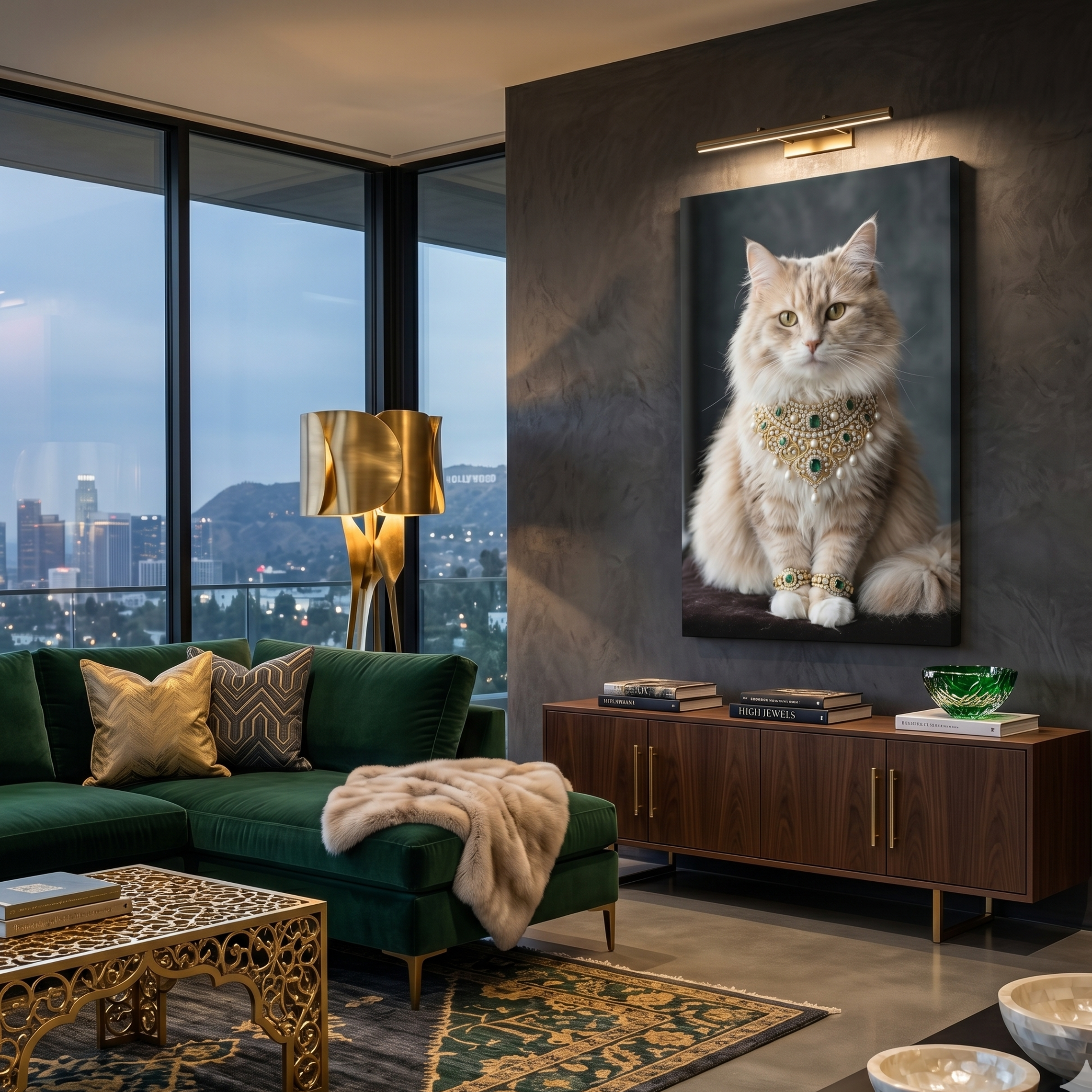 The “trick” of The Aristocrat is Status Contrast. By placing high-society jewelry on an inherently “soft” creature, it fires the guest’s Luxury Circuit. It signals that the inhabitant of this space operates at a level where class is not just a habit, but an environment. It makes the guest feel they are in the presence of refined wealth.
