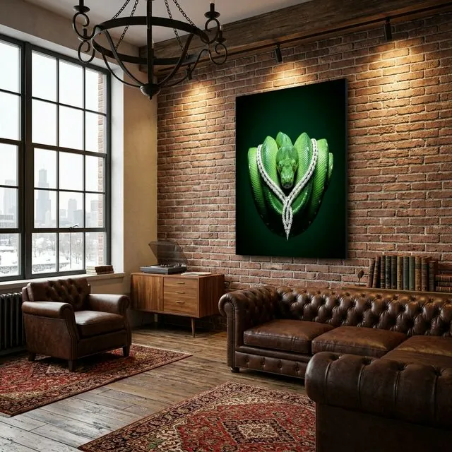 The Empress is the undisputed apex of patience. Explicitly draped in the delicate brilliance of Boucheron-inspired diamond pavé, this Emerald Tree Boa represents the cold-blooded threat of an apex predator smoothed over by the highest level of society. It is a profound statement of unwavering confidence.