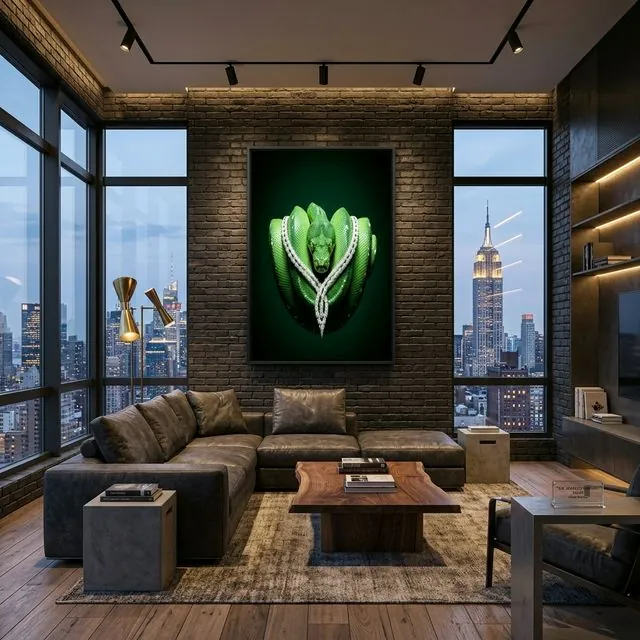 The “trick” of The Empress lies in its Extreme Visual Tension. The hyper-realistic detail on the scales and diamond facets triggers the guest’s Visual Lust centers, forcing them to stop and stare long enough to physically feel the danger under the diamonds. It signals that you are the individual who has mastered the art of waiting—silent, untouchable, and always one move ahead.