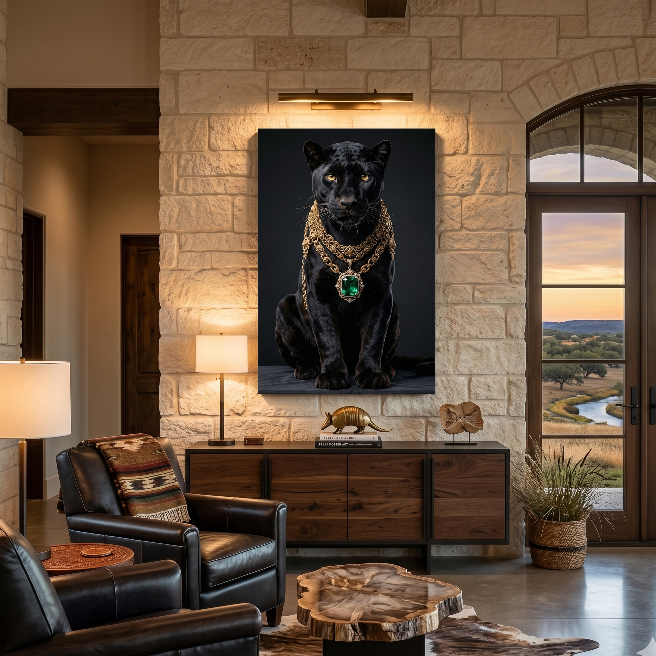 The “trick” of The Sovereign lies in its Negative Space. The deep obsidian blacks are engineered to disappear into the shadows of a room, leaving only the glowing gold and the panther’s emerald eyes to command the light. It fires the guest’s Vigilance Circuit—subconsciously signaling that you are the one who sees clearly in the dark.