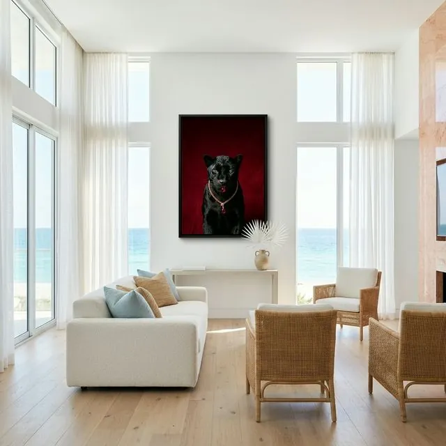- Museum-Grade Fidelity: 300 DPI multi-pass printing ensures zero pixelation, capturing the velvet-like texture of the panther’s coat and the cold fire of the gold.