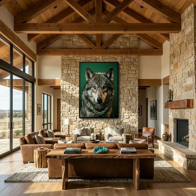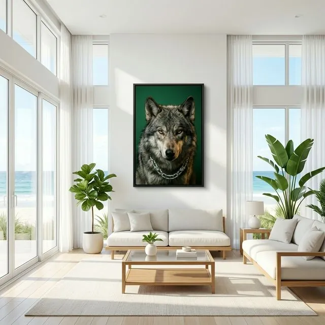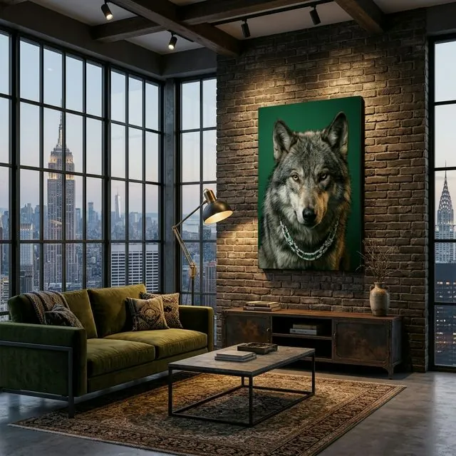 - Infinite Edge Wrap: Seamless borders anchor the wolf structurally to the wall.